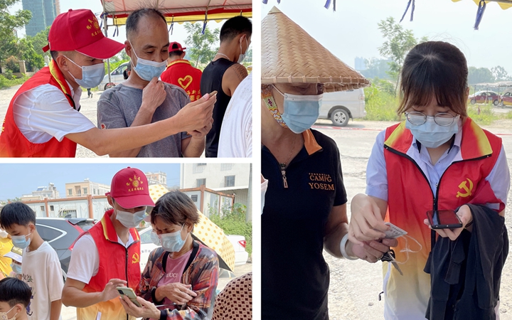 “請(qǐng)各位小朋友和老人家戴好口罩,也請(qǐng)各位家長(zhǎng)到這邊掃碼,提前準(zhǔn)備好他們的核酸碼,前往那邊排隊(duì),間隔一米距離。”黨員志愿者在協(xié)助做好核酸檢測(cè)工作的同時(shí),擔(dān)負(fù)起核酸檢測(cè)秩序維護(hù)、安全注意事項(xiàng)提醒的職責(zé)。 核酸檢測(cè)的現(xiàn)場(chǎng)有獨(dú)自前來(lái)的老人家,他們有的不知道如何使用手中的智能手機(jī),有的只有一部舊式按鍵手機(jī)。集團(tuán)黨員志愿者們耐心地幫他們錄入個(gè)人信息,成功進(jìn)行核酸檢測(cè)。為照顧本地群眾的語(yǔ)言習(xí)慣,集團(tuán)志愿者還貼心地用粵語(yǔ)、普通話還有“夾生”黎話(當(dāng)?shù)胤窖裕┹喎M(jìn)行了“多語(yǔ)種”宣導(dǎo)。集團(tuán)黨員志愿者熱情友好的志愿服務(wù)得到了現(xiàn)場(chǎng)群眾和其他志愿者的一致好評(píng)!
